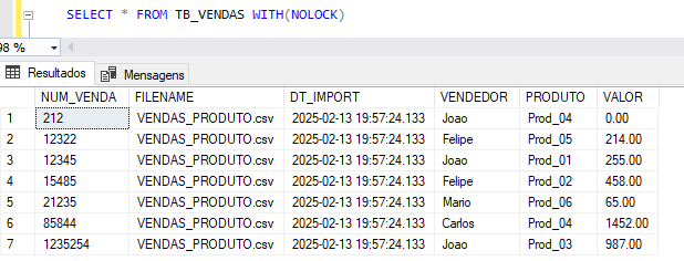 TB_VENDAS será utilizada para armazenar o resultado final da importação, já apos todas as tratativas necessárias.