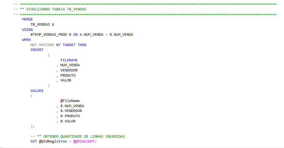 Ao finalizar a atualização, é obtido a quantidade de linhas afetadas por meio da variavel de ambiente @@ROWCOUNT e armazenado em minha variavel @QtdRegistros, para posterior uso no report de email.