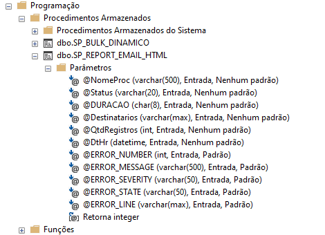 Detalhes da procedure SP_REPORT_EMAIL_HTML: